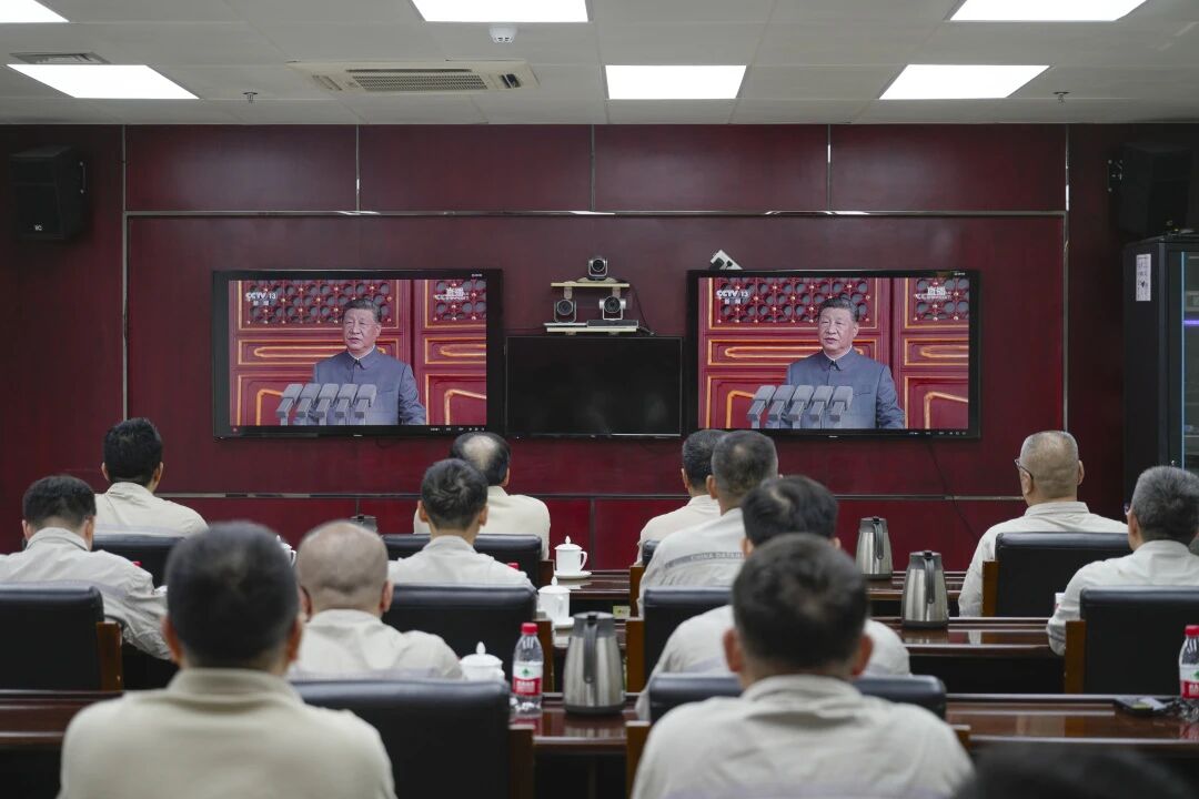 科研總院組織系統職工集中觀看九三閱兵直播。