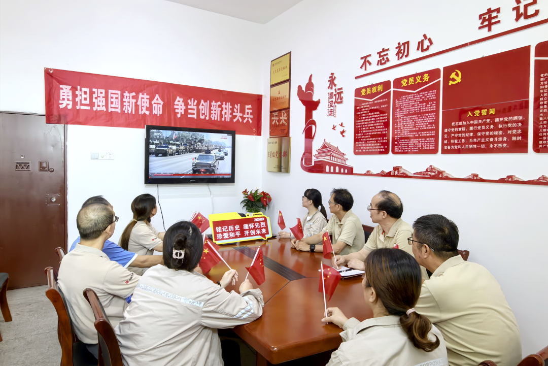 廣東分公司1900多名黨員干部職工觀看九三閱兵直播。這場生動的愛國主義教育課激揚愛國情懷、凝聚奮斗力量。