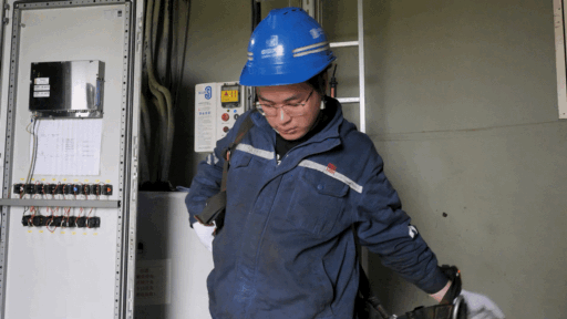中午,我跟著送飯的車前往現(xiàn)場,還幫他們帶去了公司工會“特供”的冰鎮(zhèn)鹽汽水。穿上厚重的連體服,踩著免爬器“滴嘟滴嘟”通向80米高的機艙,我感受著隨著高度而逐漸上升的溫度。