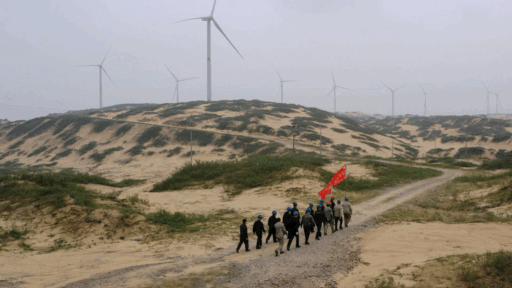 我招呼他們先把飯吃了,王鵬卻著急往風機輪轂里鉆,他說:“換完變槳電機再吃,另外兩個同事都還在里面等我呢。”我向狹小的通道內探了探頭,輪轂內的溫度竟然比機艙內的溫度還要高,測溫槍上顯示足足有50度。我看著三位大漢面面相覷,他們臉上豆大的汗珠在瑩瑩燈光的映照下愈發(fā)顯得耀眼。 1、2、3,1、2、3,他們憋紅著臉,合力將一百多斤的電機抬下,再用安全繩將電機掛好。更換完電機,他們癱坐在地上,笑著享用今天的午餐。青春就是如此:艱難困苦得以成長,汗流浹背得以成熟,理想信念得以團結。