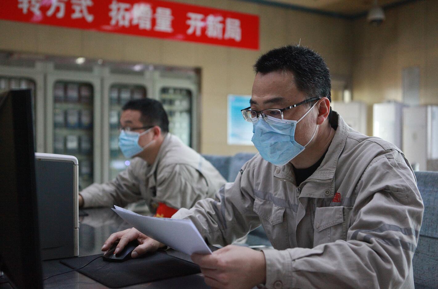 設備部電控點檢員正在檢查熱網系統參數