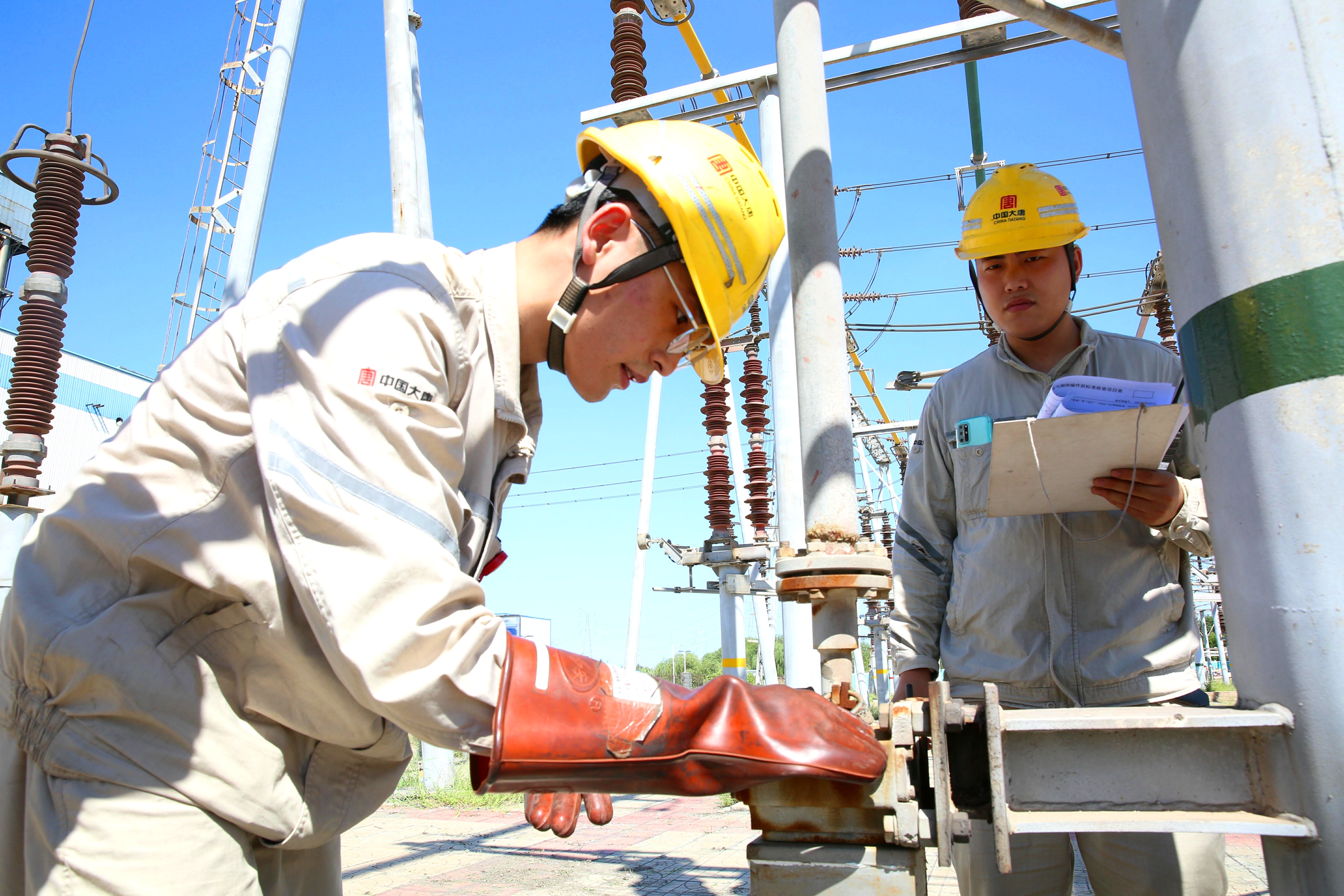 這是該公司升壓站的檢修現場。此時,室外溫度已經躥升至37攝氏度,火紅的驕陽炙烤著現場的每一個人,大家的工裝如同洗了一般被汗水浸透。