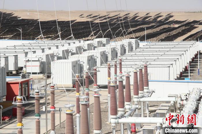 圖為5日,大唐第十四師昆玉市100萬千瓦光伏基地配套儲能區。馬曉東 攝