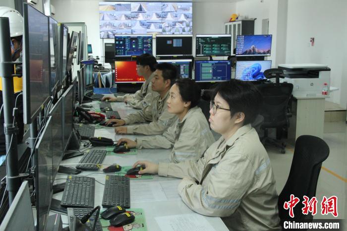 圖為5日,大唐第十四師昆玉市100萬千瓦光伏基地中控室內,工作人員通過智能化、數字化系統進行運維操作。馬曉東 攝