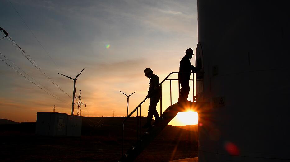 夕陽下的風場守護者