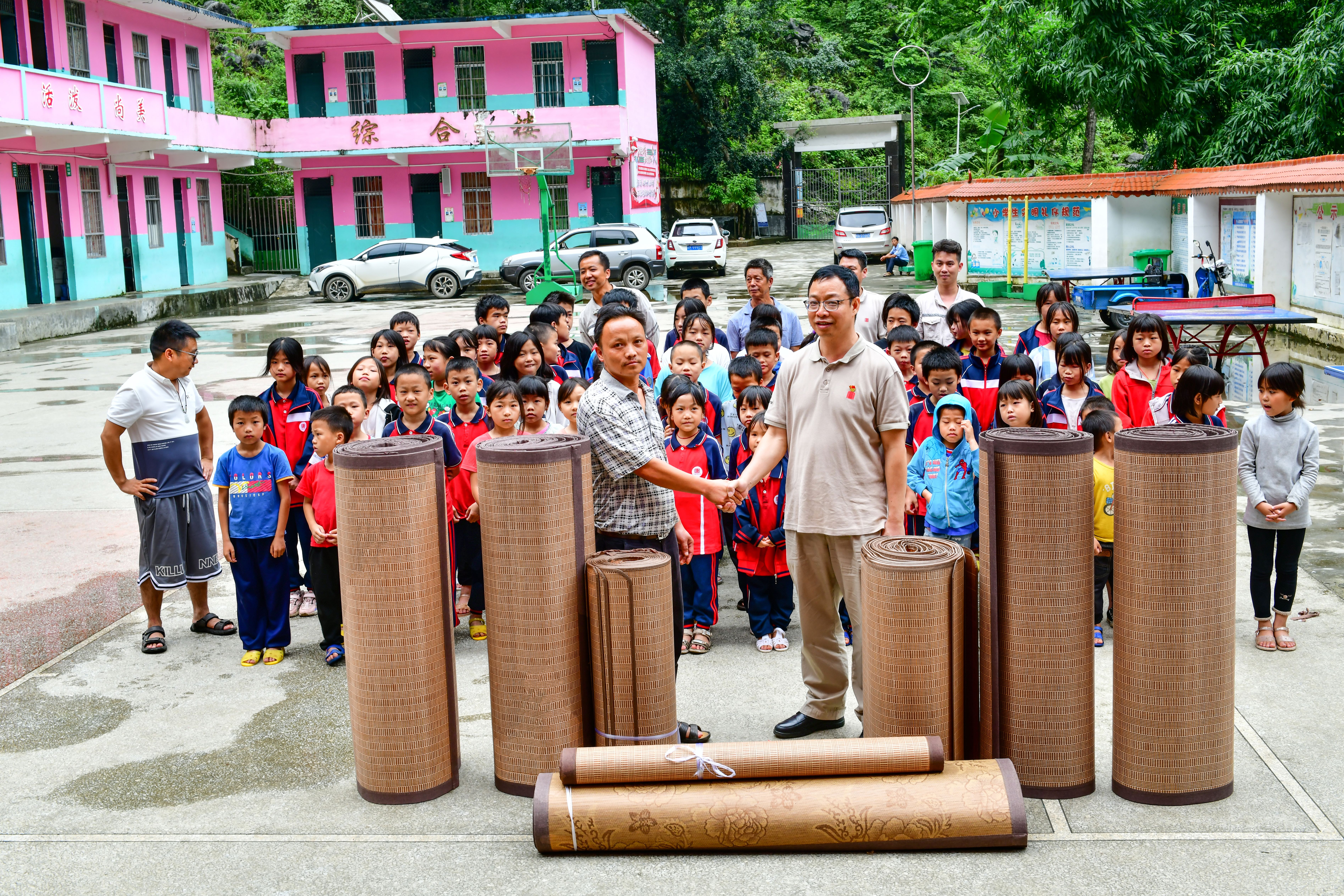 ?????巖灘水電公司贈送安蘭小學涼席? 謝方明/攝